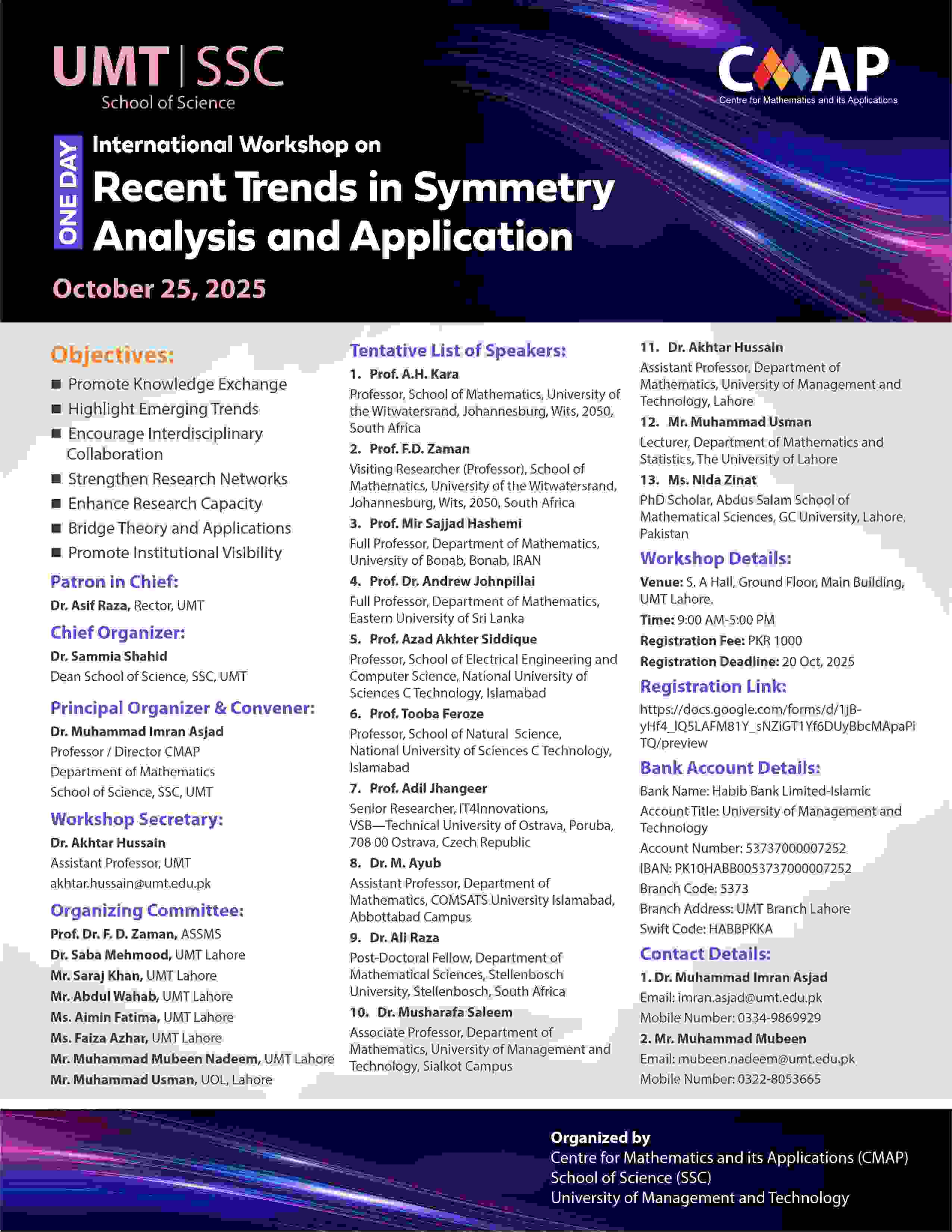Greetings from the Centre for Mathematics and its Applications (CMAP) at University of Management and Technology (UMT), Lahore!